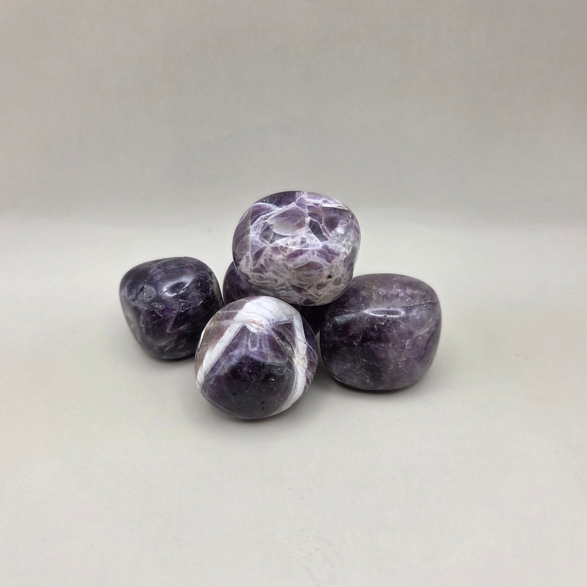 Connect with the serene, spiritual energy of tumbled Amethyst—a stunning purple crystal that opens intuition, promotes inner peace, and deepens your connection to higher consciousness. Each polished stone showcases Amethyst's characteristic violet hues, smooth and ready to carry, holding the pure crystalline frequency straight from Earth's depths.
