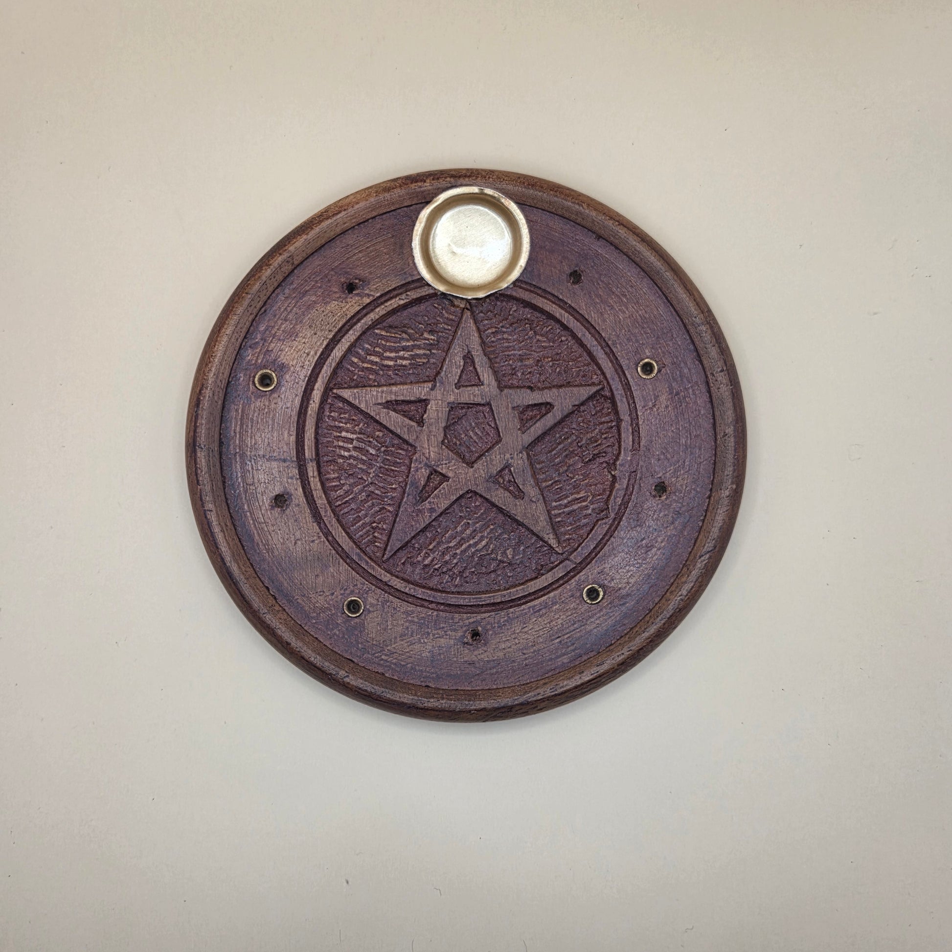 Sold individually. Each wooden pentacle incense holder is handcrafted with natural variations in wood grain and color. Approximately 4 inches in diameter. Incense not included. 🌿